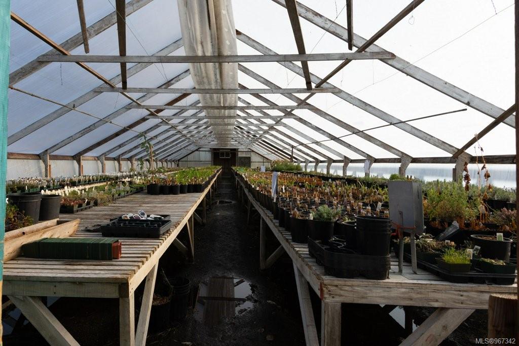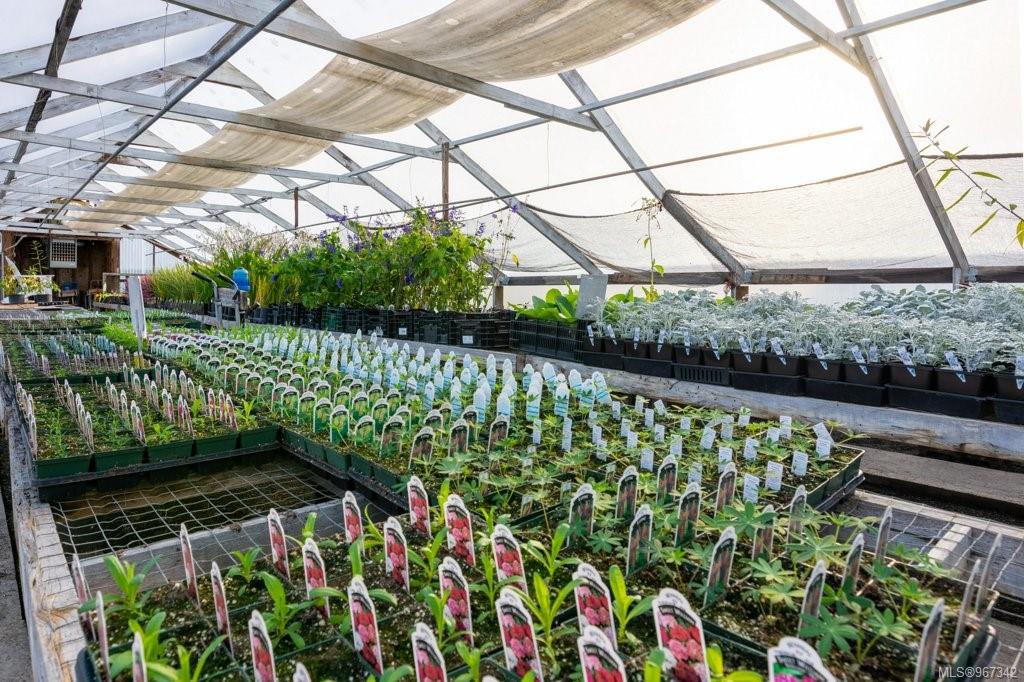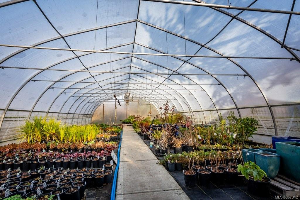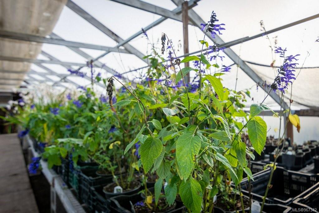 Work, live, and thrive with this well-established and flourishing nursery, perfectly situated in the heart of the Comox Peninsula. This incredible property spans two separately titled lots (20 and 18.48 acres), with the business and residence on the front parcel. The property features a spacious 2500+ sq ft residence, 16 greenhouses, a beloved therapeutic garden (leased), several outbuildings including a barn and shop area, and all the sales and operational areas of the nursery. Enjoy a high-quality and abundant water supply, sourced from an artesian spring and pond. This nursery offers significant upside potential, as the current operation occupies only a small portion of the overall parcels. Ideal for those seeking an award winning business with an established customer base, and a residence with all the infrastructure in place. Plenty of room to expand and diversify. Don't miss out on this unique opportunity purchase this popular and exciting lifestyle.