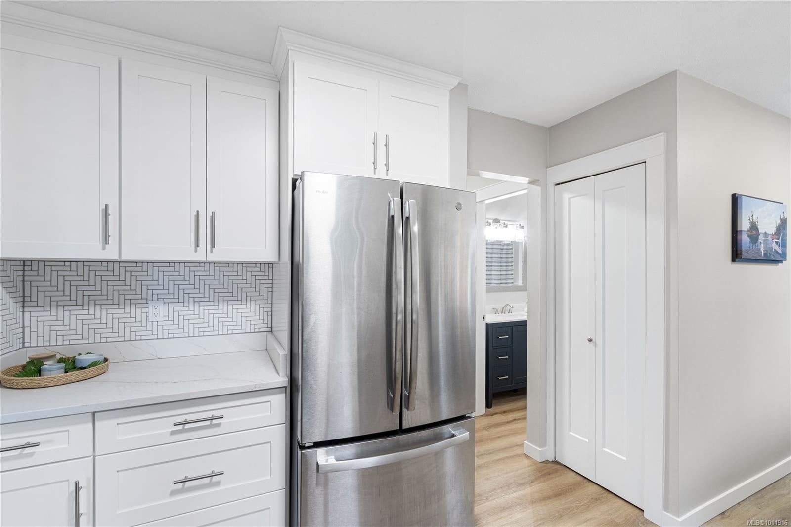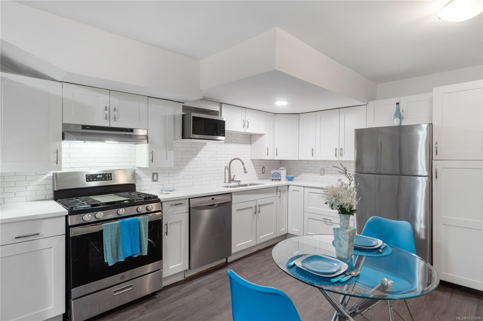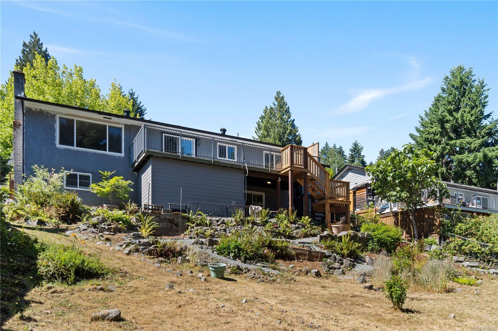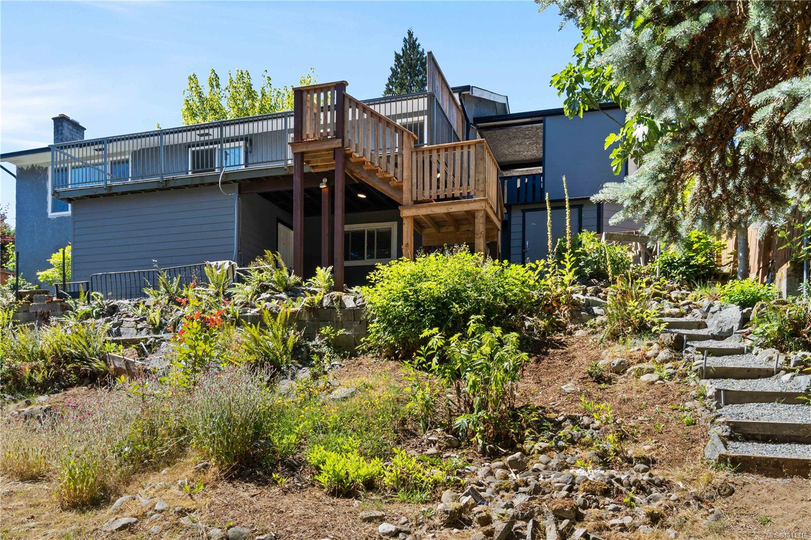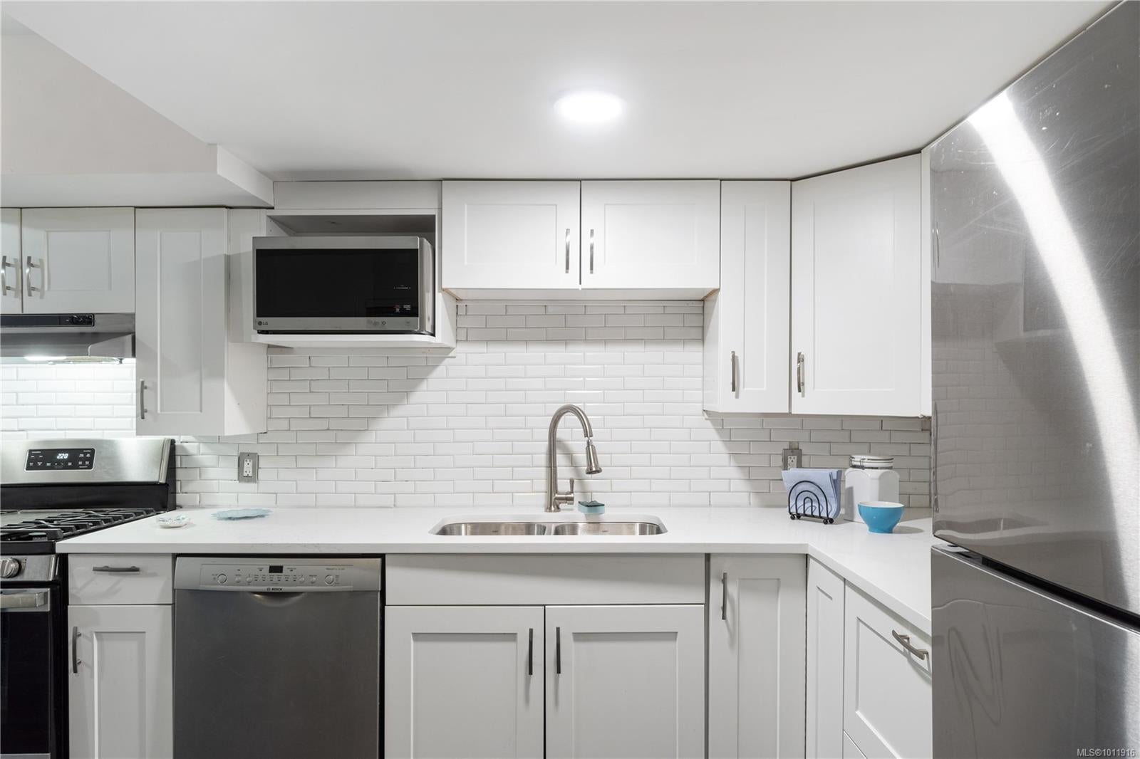 Beautifully updated from top to bottom with Income Suite and Ocean View. Centrally located main-level entry home in an established neighbourhood. Spectacular main floor was completely revitalized in 2025 includes a modern, open-concept space, new vinyl plank flooring, doors, lighting, trim, and stylish fluted feature walls. Chef's kitchen boasts new solid wood cabinets and pristine quartz countertops (2025), s/s appliances, and laundry. The living room opens to a large deck with ocean and mountain views. (3 Beds / 2 Baths upstairs).Downstairs houses a self-contained 2-bedroom suite with its own entrance, new quartz countertop in kitchen (2025) and in-suite laundry. Ample storage is included.Large fully fenced backyard ready for your ideas.Worry-Free Updates: Concrete driveway (2021), furnace/hot water heater (2020), eavestroughs/deck stairs (2025). Steps from Coronation Mall and the Holland Creek Trail system. Move-in-ready opportunity for flexible living and immediate revenue.